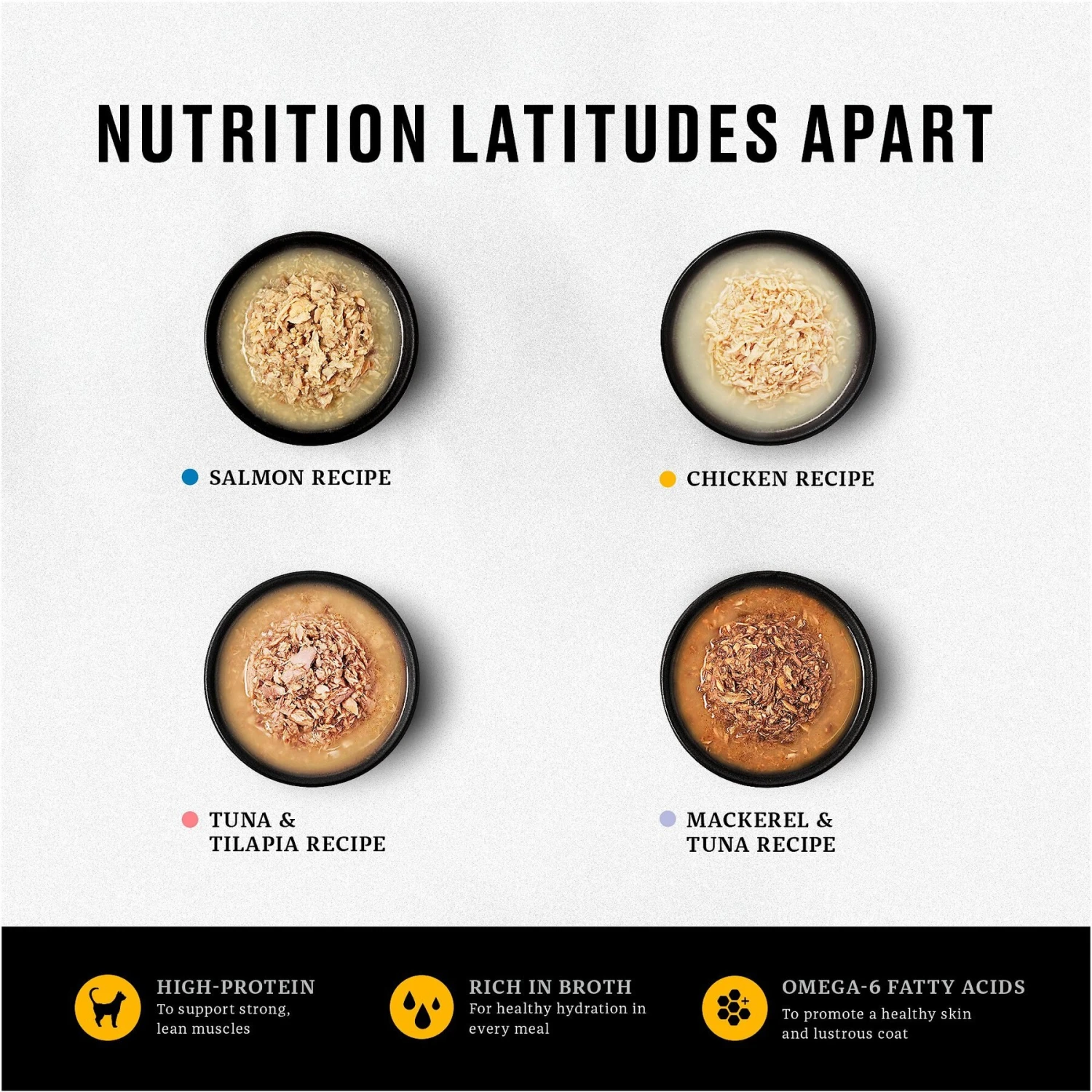 | Flavor | Variety Pack: Chicken & Seafood, Tuna & Tilapia, Salmon, Mackerel & Tuna, Variety Pack: Poultry & Tuna, Chicken & Vegetables, Chicken & Turkey, Chicken |