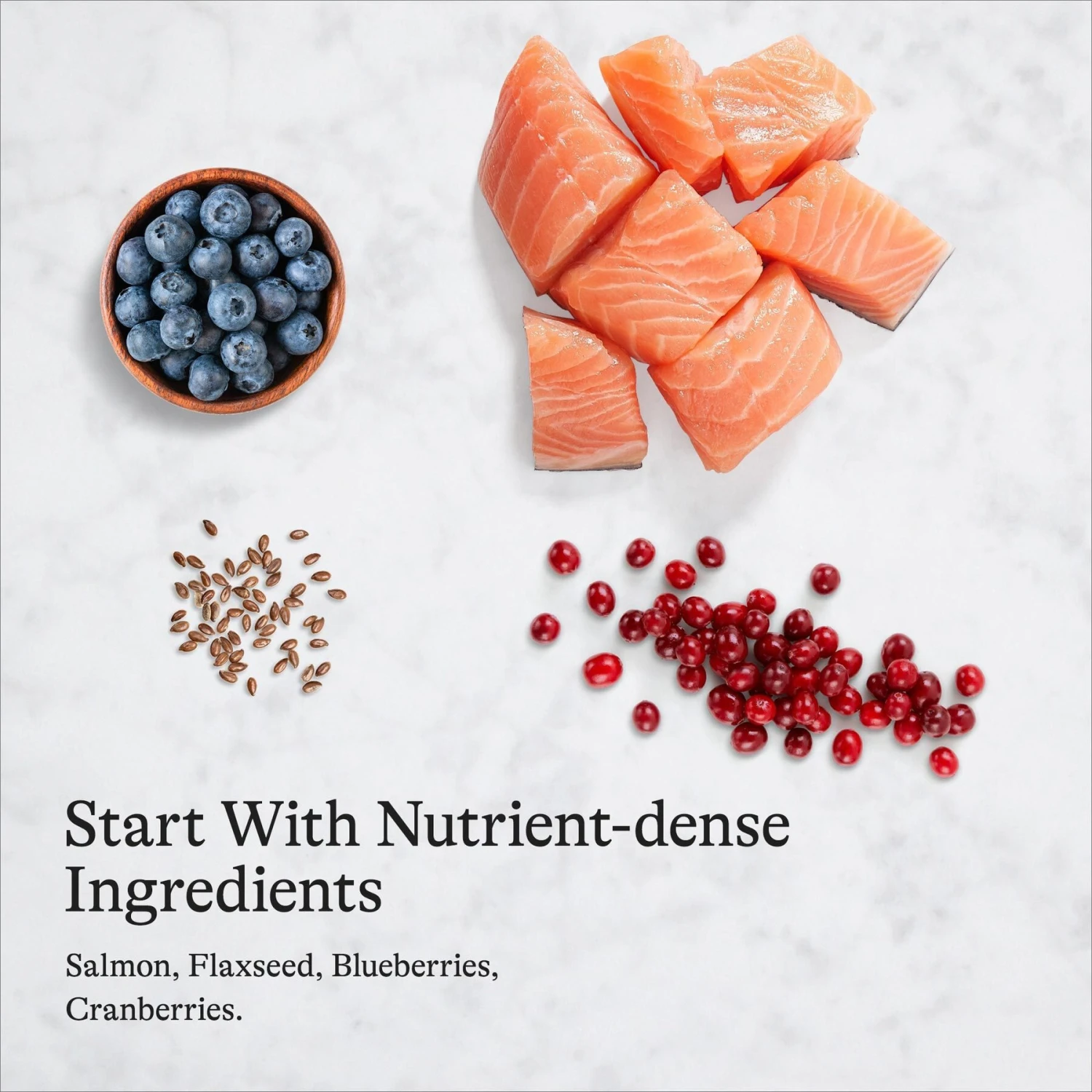 - 100% grain-free adult recipe features turkey and salmon as the top ingredients for the protein needed to support lean muscles.