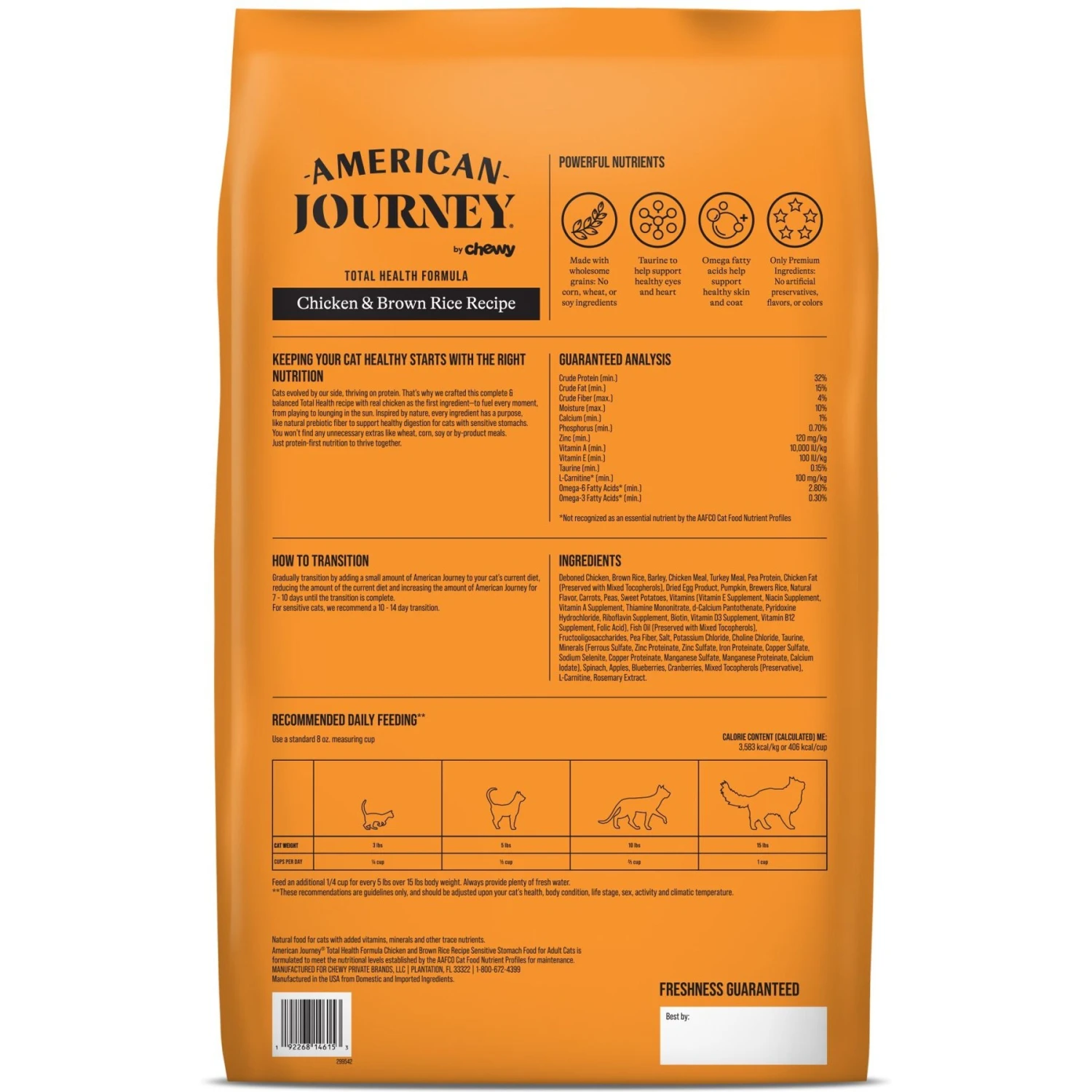 American Journey Sensitive Stomach Total Health Formula Chicken & Brown Rice Recipe Dry Cat Food, 15lb Bag