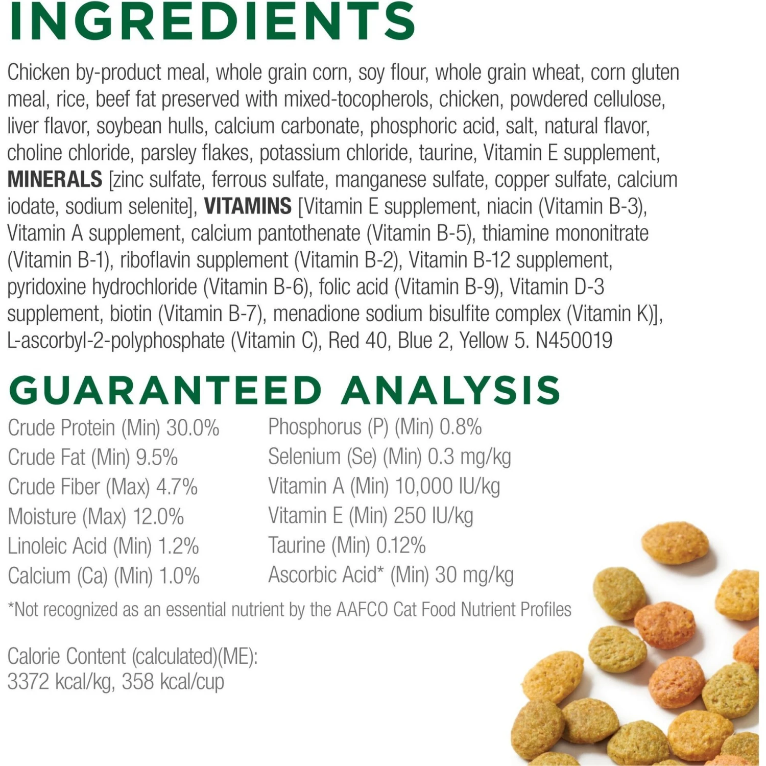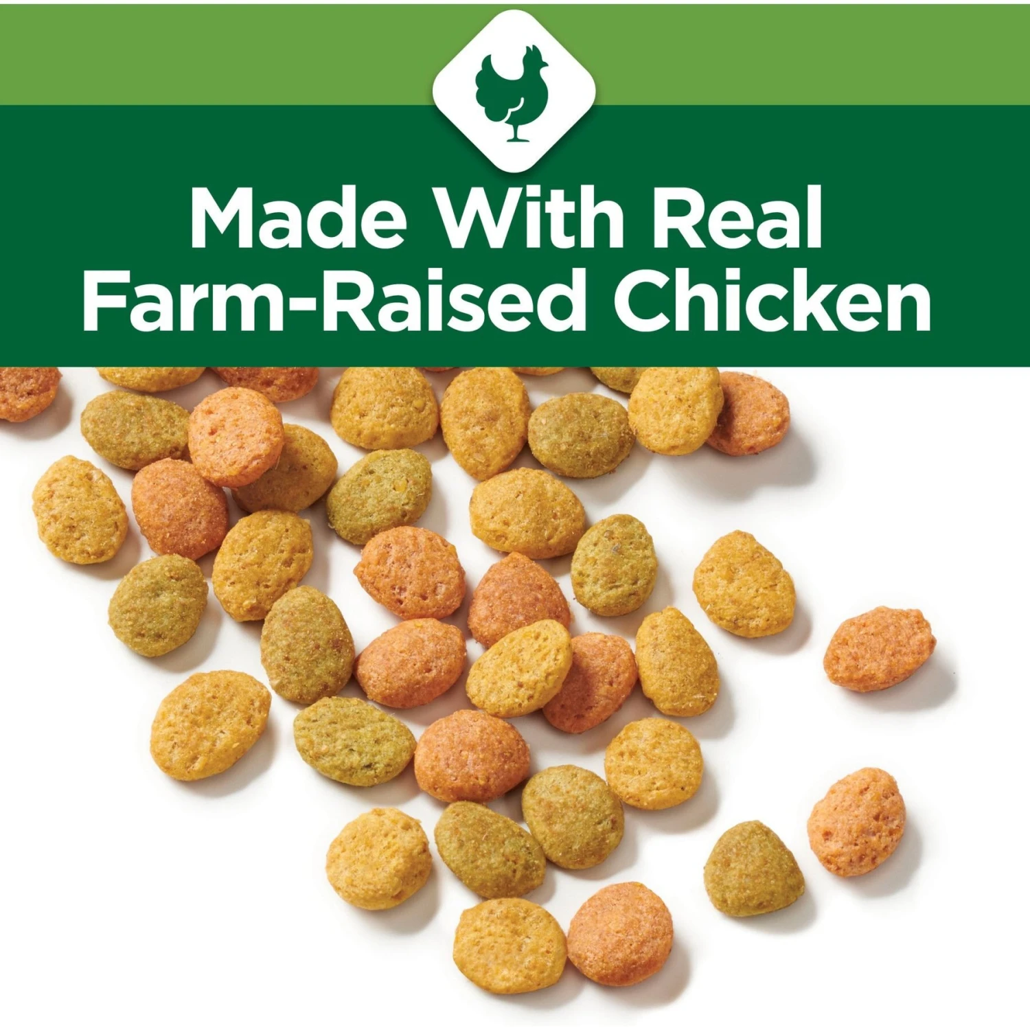 - Real farm-raised chicken helps create a crunchy cat food kibble specially made to fuel the energy needs of your indoor adult kitty as she cuddles and plays.