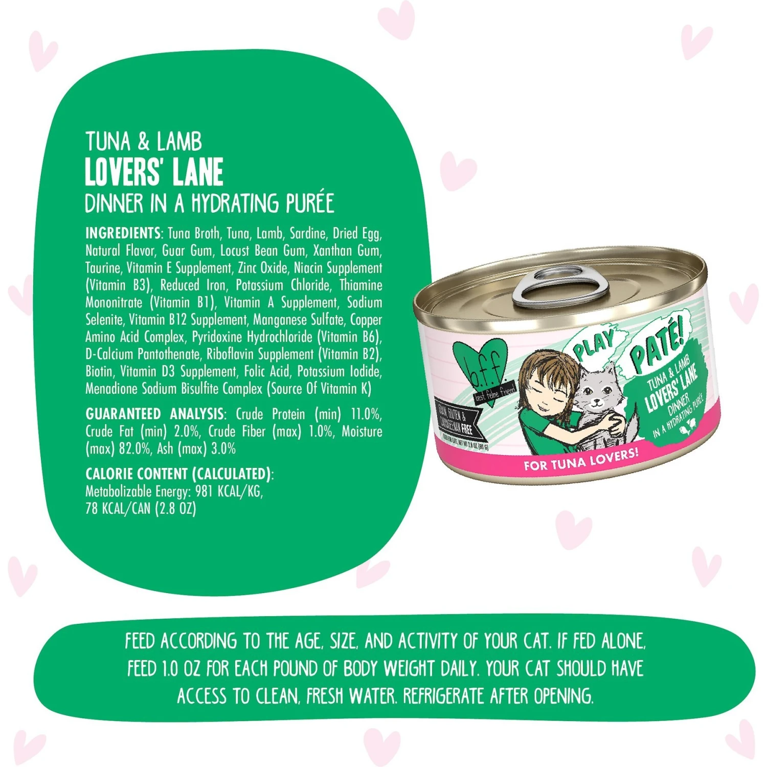 BFF Play Pate Lovers Tuna & Lamb Lovers’ Lane Wet Cat Food, 2.8-oz Can, Pack Of 12