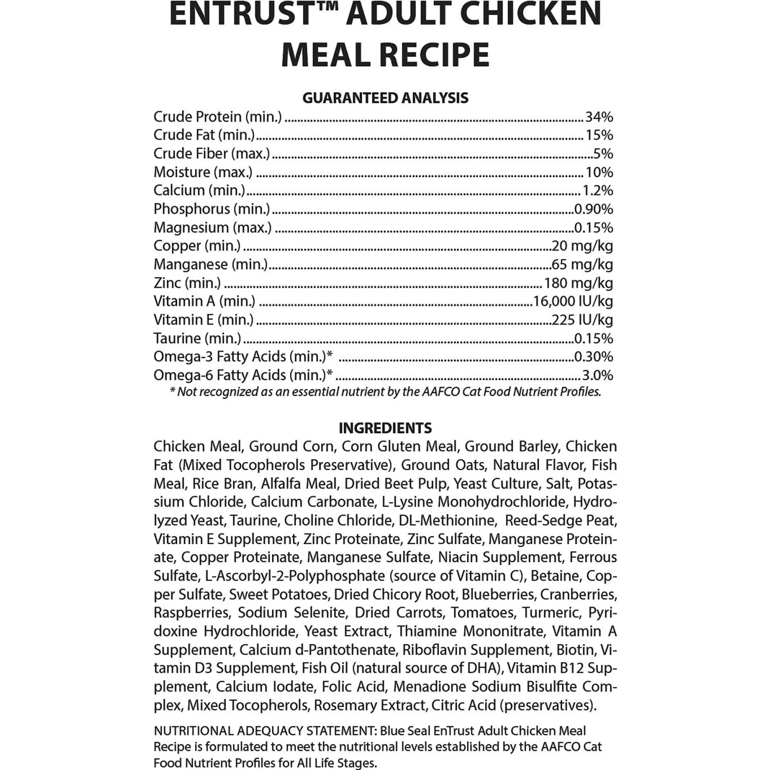 Blue Seal EnTrust Adult Cat Chicken Meal Recipe Dry Cat Food