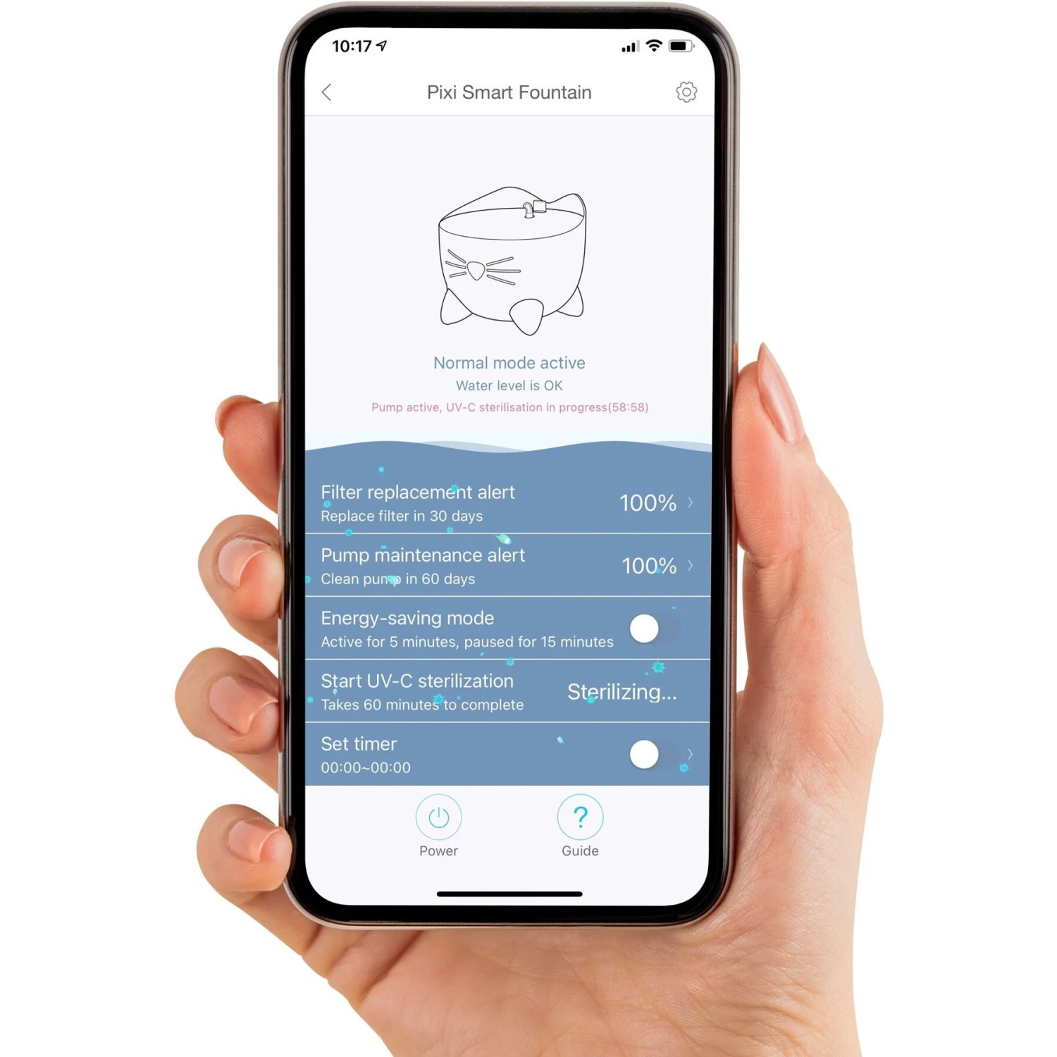 - Features wi-fi and a free Catit PIX app to switch between modes, receive push notifications to refill the reservoir, and start the UV-C sterilization process remotely!