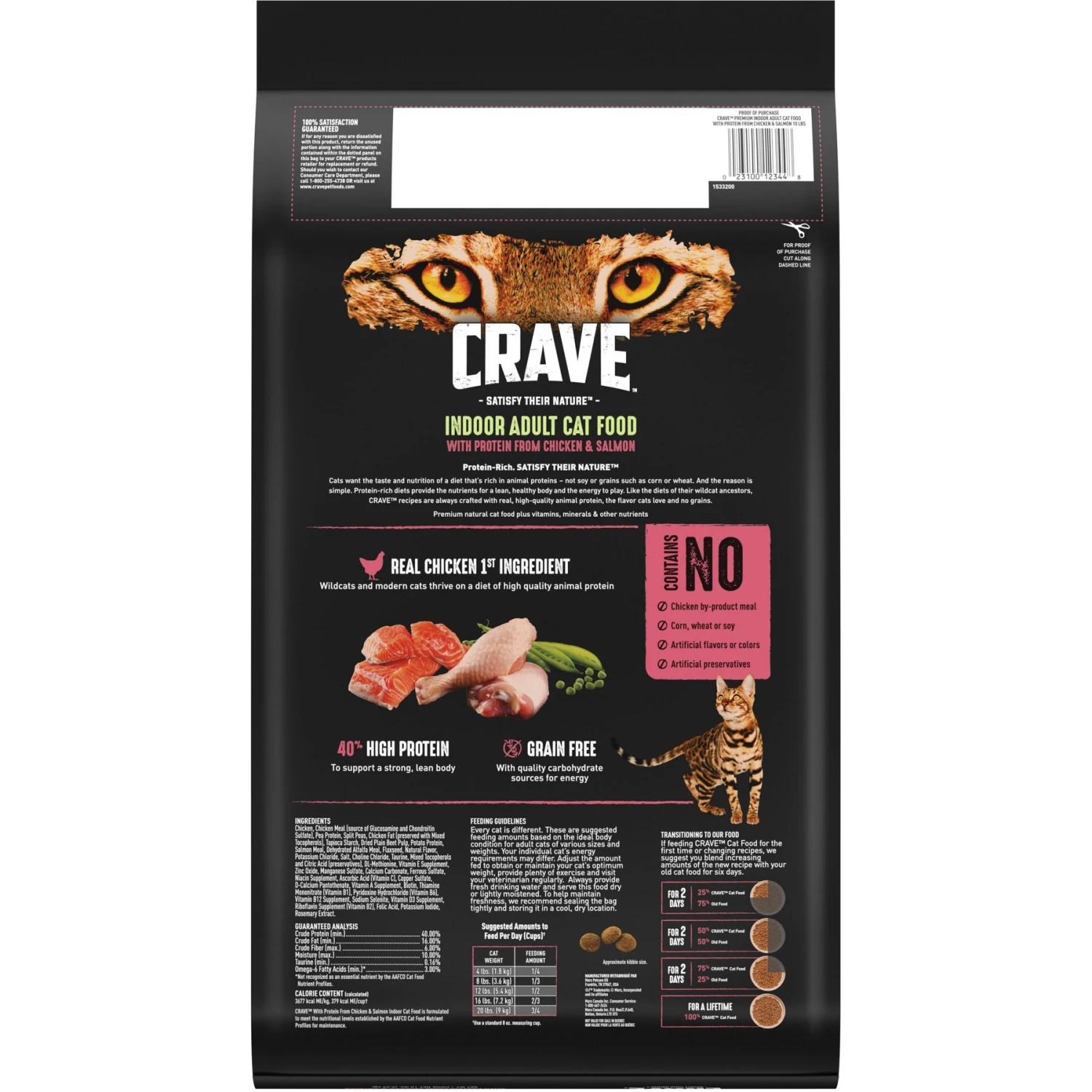 - With 40% protein, this feline food provides your cat with essential nutrients for developing muscle, healthy digestion and supporting a strong immune system.