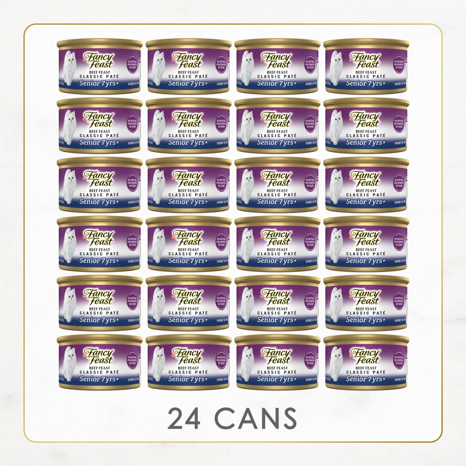 Fancy Feast Beef Feast Classic Pate Senior 7+ Canned Cat Food, 3-oz Can, Case Of 24