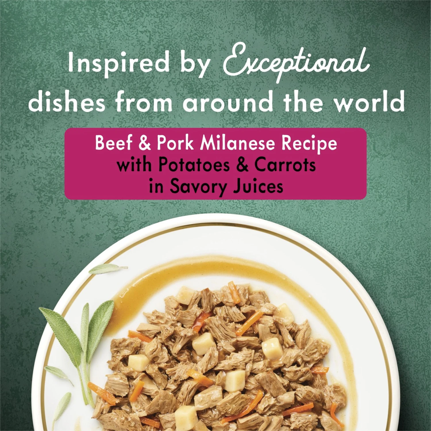 - Beef & Pork Milanese with Carrots and Potatoes in Savory Juices is made without artificial ingredients, colors or preservatives.