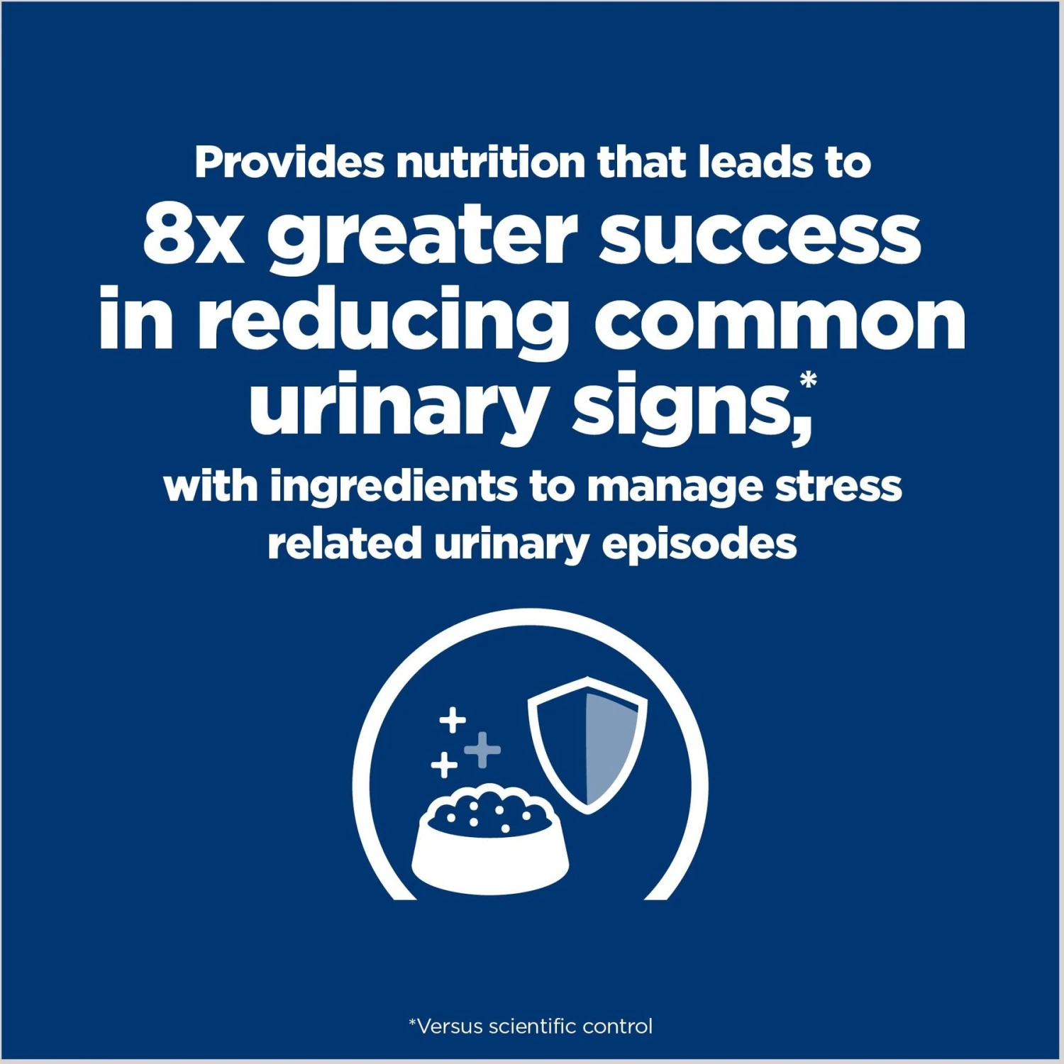 - Clinically tested nutrition to lower the recurrence of most common urinary signs by 89% and promote desirable urine pH levels.