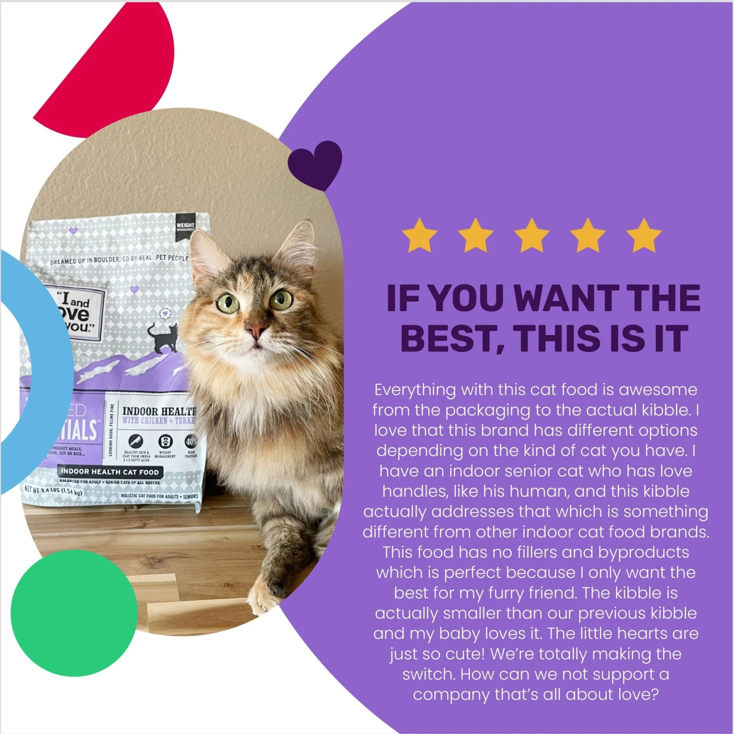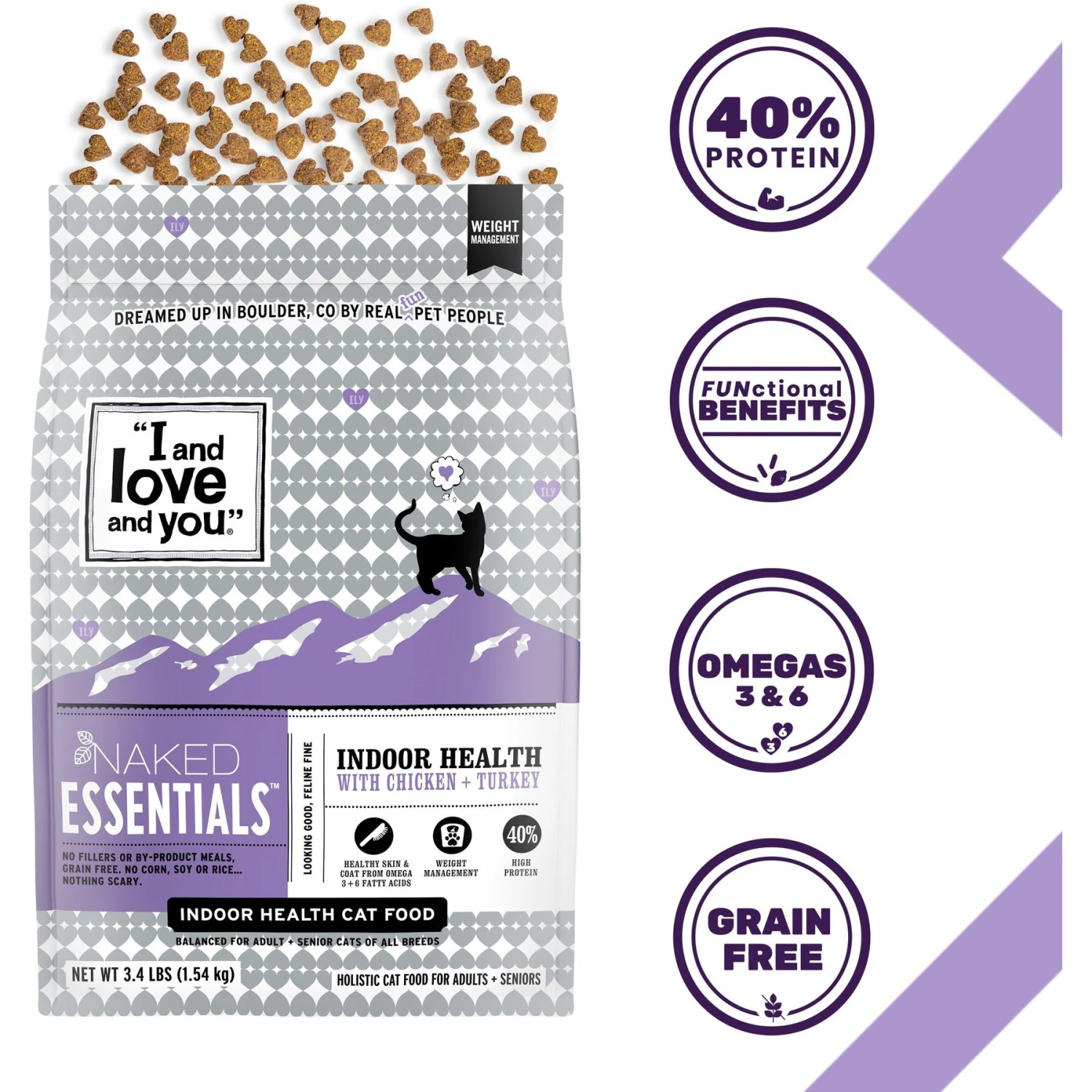 I And Love And You Naked Essentials Indoor Health Chicken And Turkey Recipe Dry Cat Food, 3.4-lb Bag