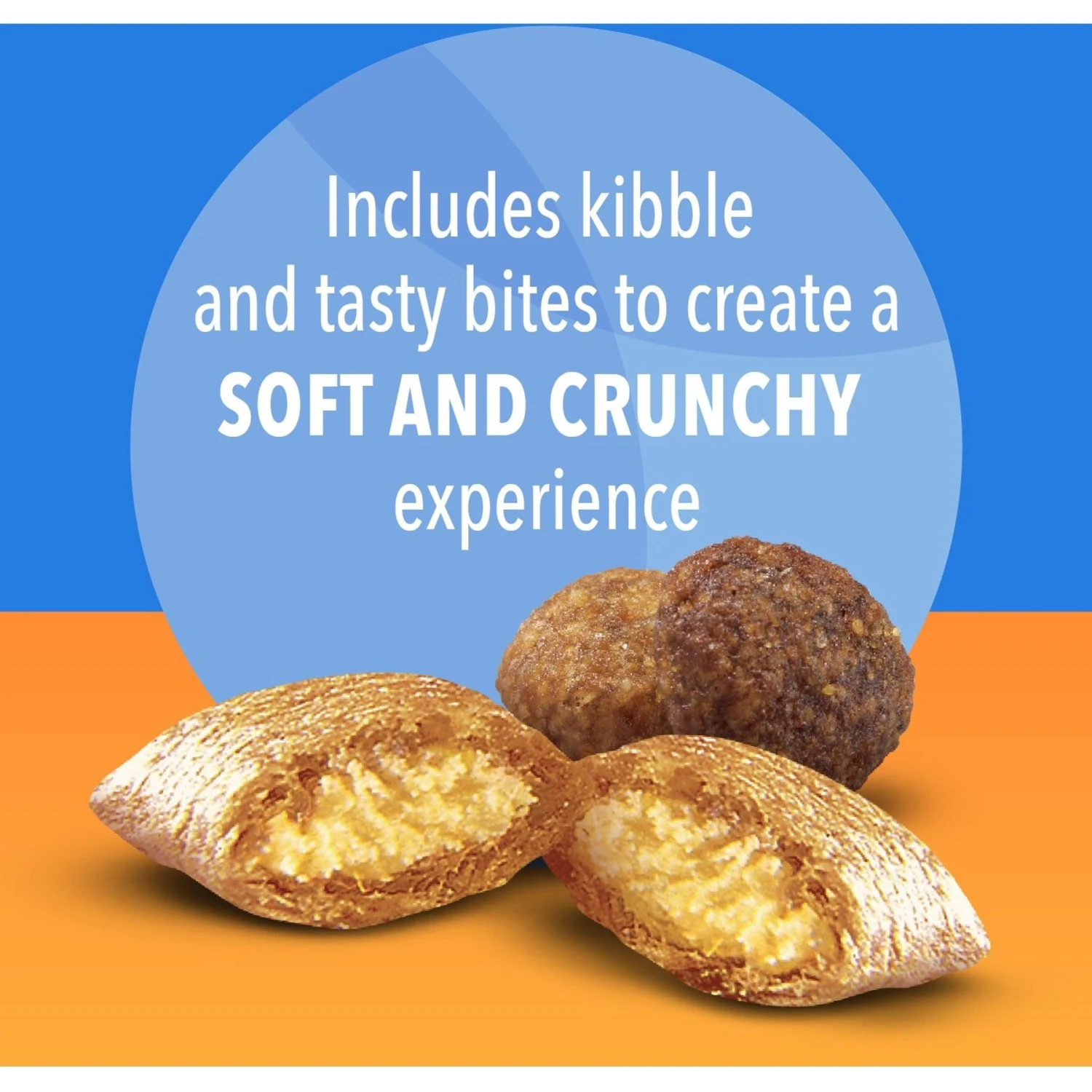 - Savory bites are combined with kibble to create a soft and crunchy experience.