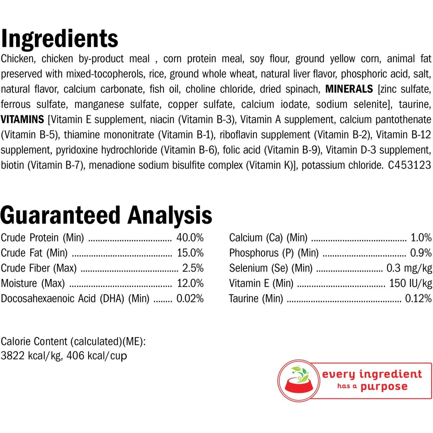 - Purina dry cat food for kittens including high-quality ingredients like real chicken as the number 1 ingredient, and high protein to support your kitten’s developing muscles.