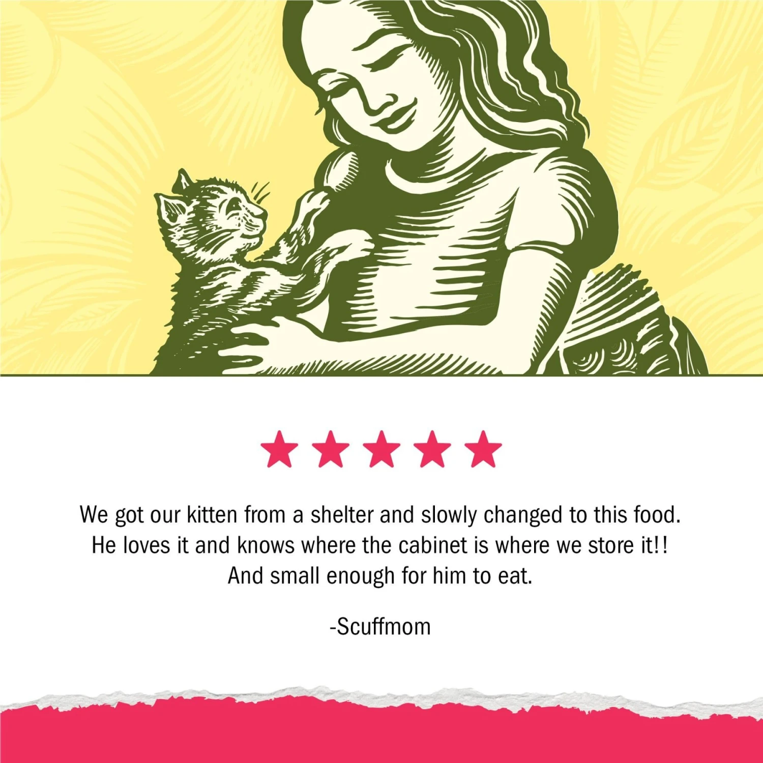 - Dry kitten food formulated especially for kittens, made without artificial colors, flavors or preservatives.