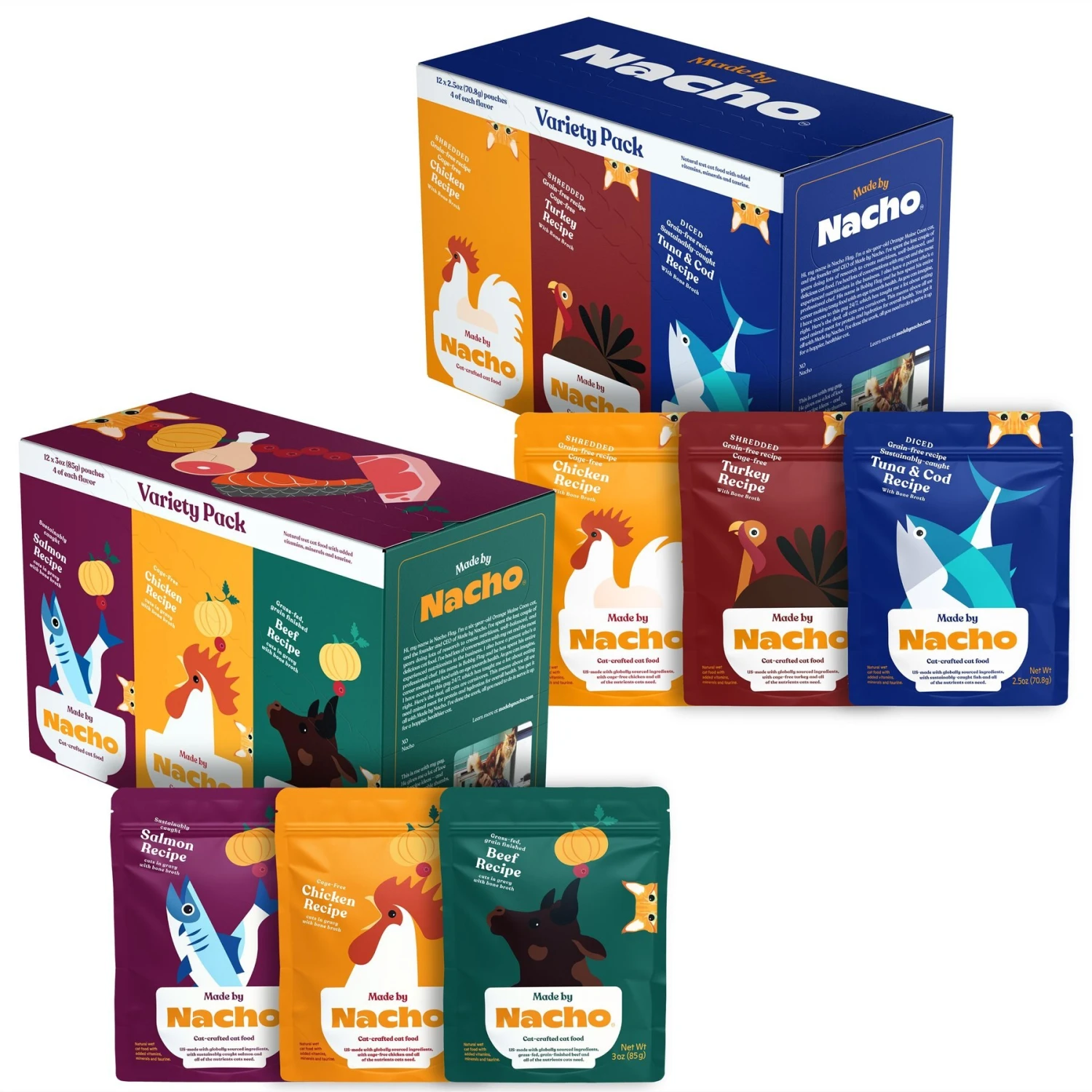 Made By Nacho Cuts In Gravy Recipes With Bone Broth Variety Pack Wet Cat Food & Made By Nacho Shredded & Diced Recipes With Homestyle Bone Broth Variety Pack Grain-Free Wet Cat Food