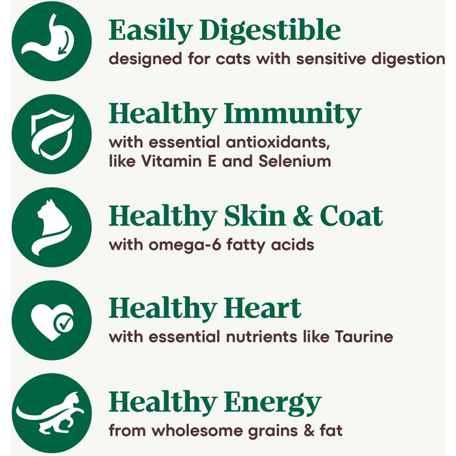 - This easily digestible formula is tailor made for cats with sensitive stomachs.