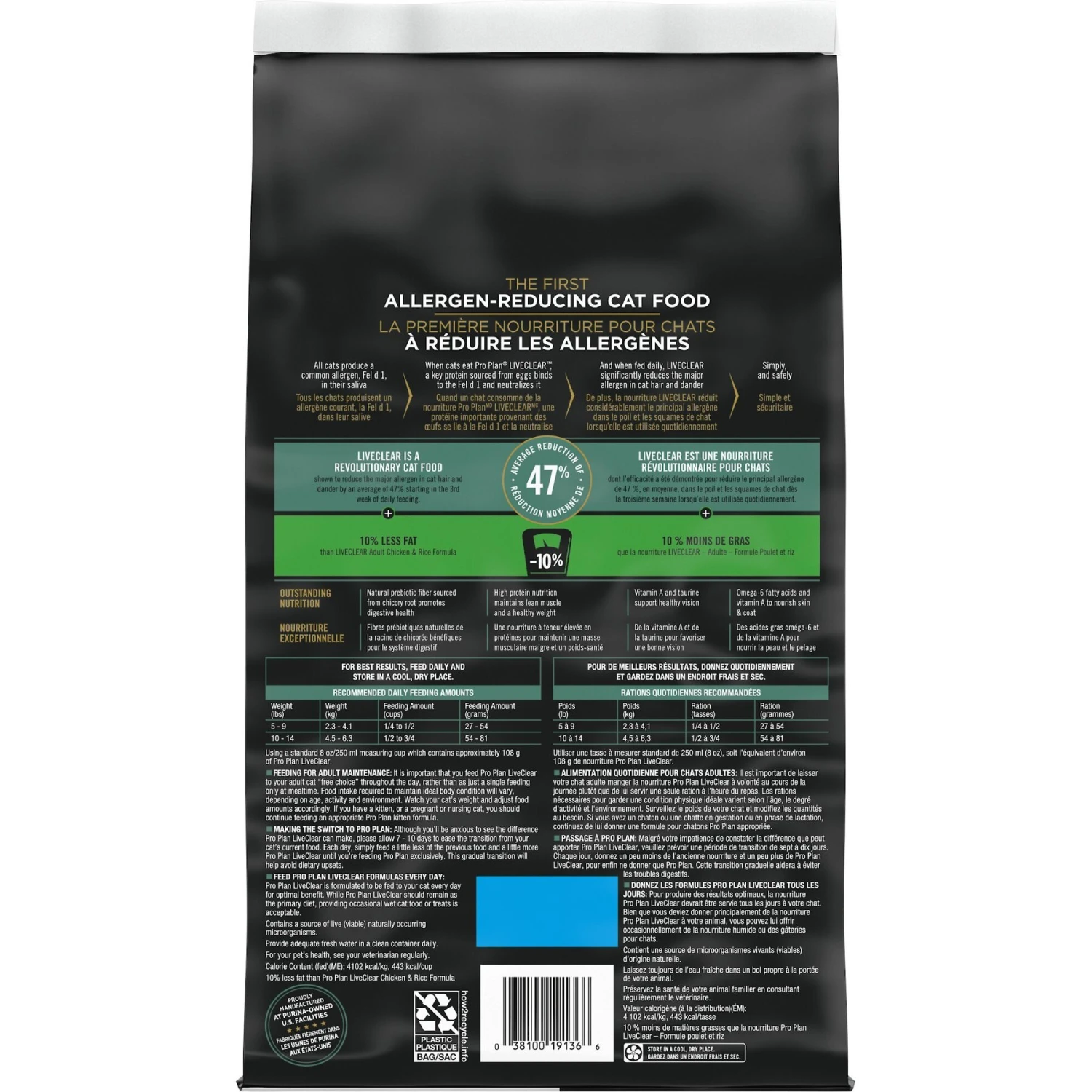 - With 10% less fat than LIVECLEAR Chicken & Rice Formula, this indoor weight control cat food helps meet the unique nutritional needs of indoor kitties.