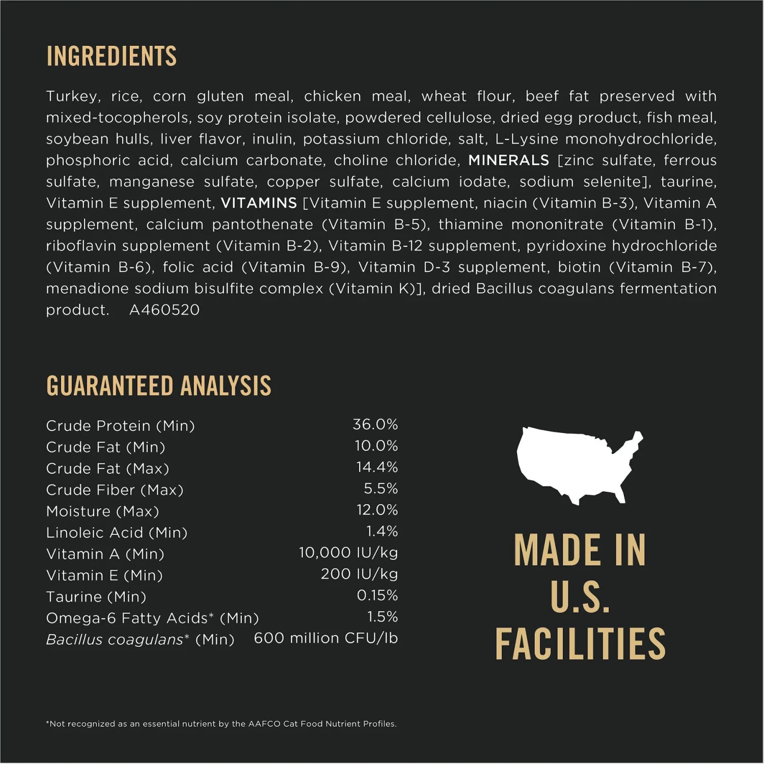 - Guaranteed live probiotics and natural prebiotic fiber in this turkey cat food formula support the digestive and immune health of your furry friend.