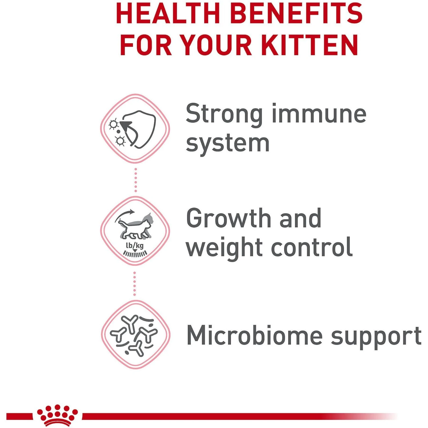 - X-shaped, specialized kibble is perfect for a kitten’s small mouth and new teeth, making it easy for a kitten to grasp and chew.