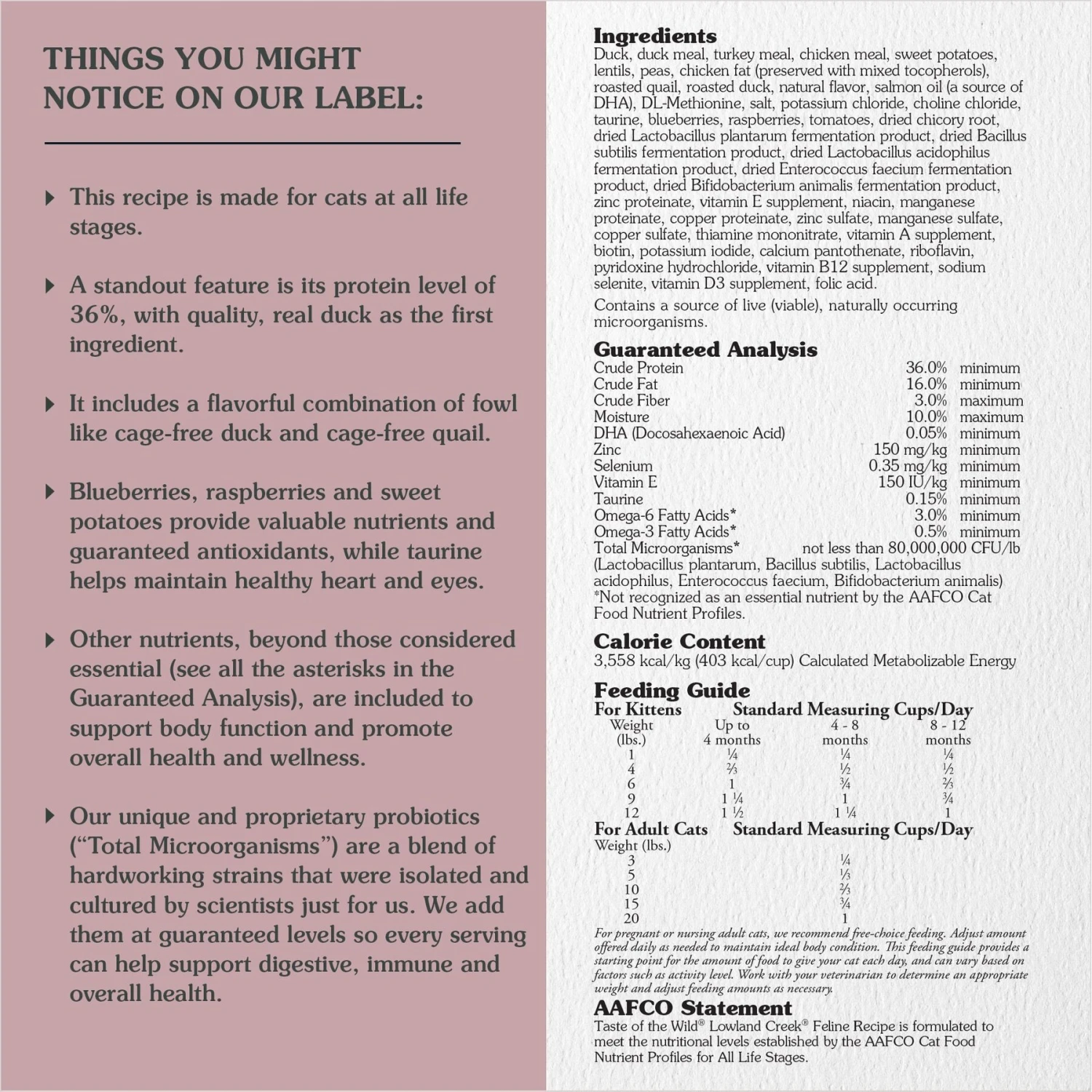 Taste Of The Wild Lowland Creek Premium Real Meat Recipe With Roasted Quail & Duck Grain-Free Dry Cat Food