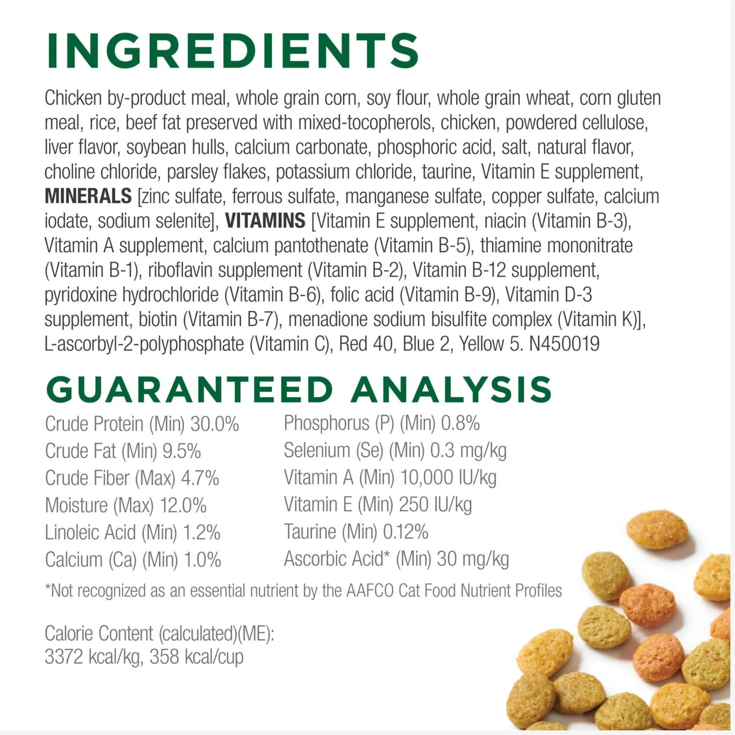 - Real farm-raised chicken helps create a crunchy cat food kibble specially made to fuel the energy needs of your indoor adult kitty as she cuddles and plays.