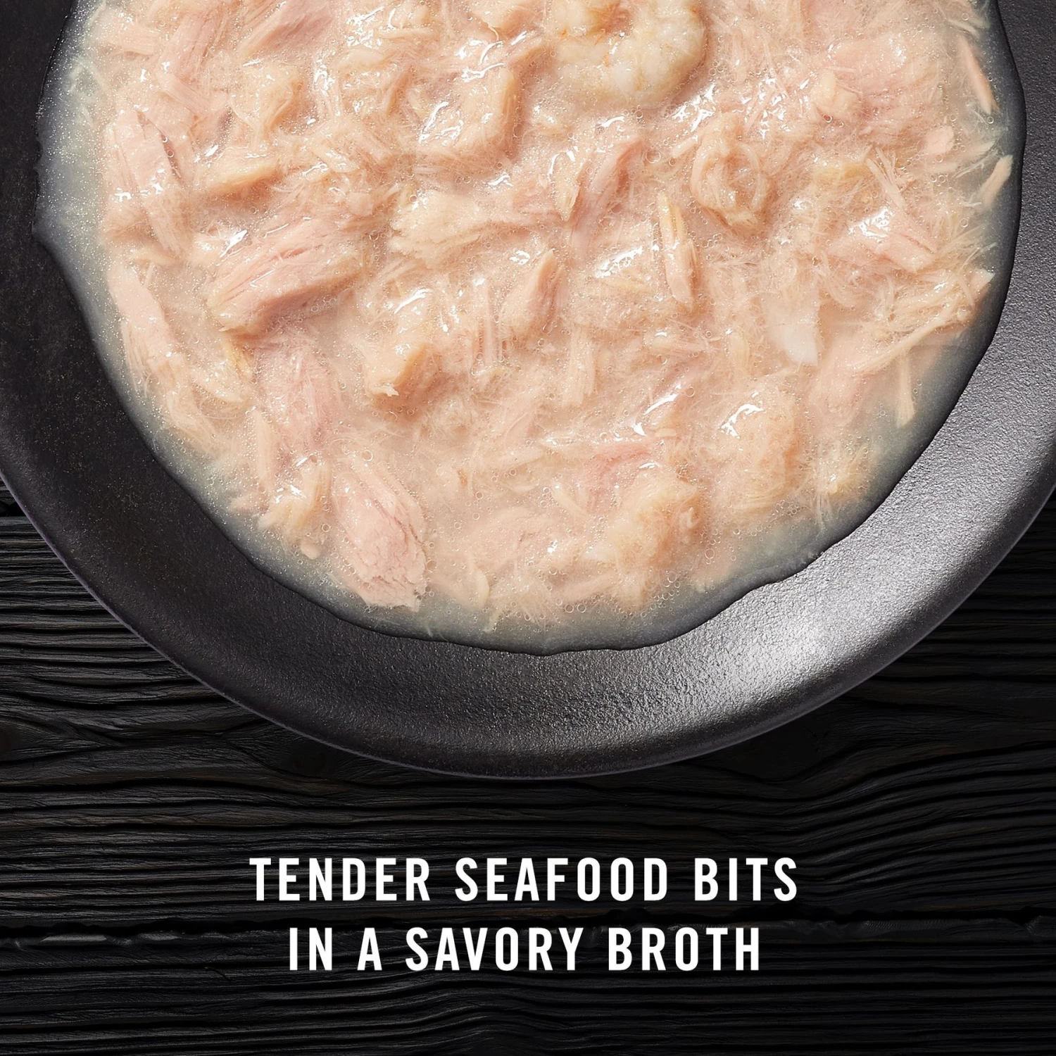 - Moist recipe with tender bites of premium tuna, shrimp and whitefish.