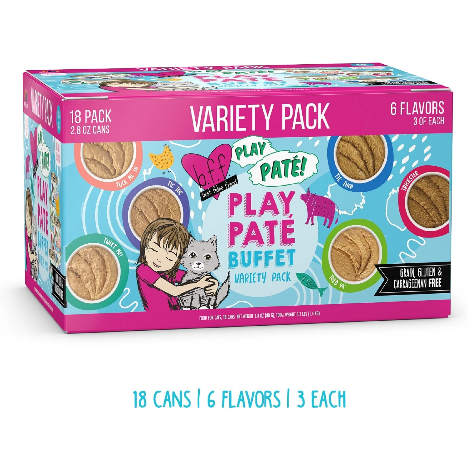 Weruva B.F.F. PLAY Best Feline Friend Pate Lovers, Aw Yeah! Blue Pate Buffet Variety Pack Wet Cat Food